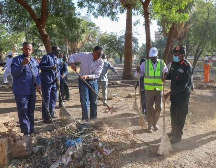 ودشن الوالي والأمين العام لمجلس السيادة الانتقالي الفريق الركن محمد الغالي علي يوسف، صباح اليوم الأربعاء، امام البوابة الجنوبية للقصر الرئاسي، بمشاركة لواء الحرس الجمهوري، برنامج تحسين وجه العاصمة الخرطوم، والذي يستهدف إزالة النفايات والتشوهات والمخالفات ، لتصبح عاصمة تشّرف السودان وشعبه.
