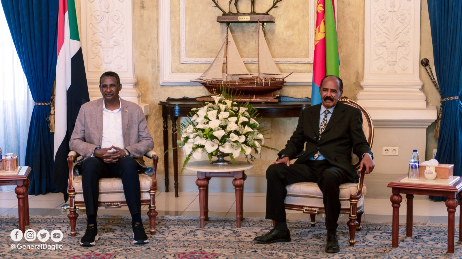 وبحسب إعلام حميدتي إن الرئيس الإريتري أشار إلى العلاقات الأزلية التي تجمع شعبي البلدين، وقال إنه يتابع باهتمام كبير، التطورات التي يشهدها السودان، وأكد أن بلاده تدعم الجهود كافة التي تحقق الاستقرار للشعب السوداني.