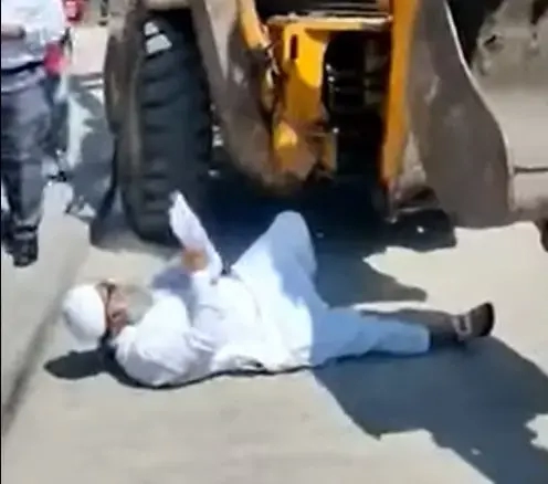 وحاول الرجل عبثًا إقناع الضابطة التي تشرف على تنفيذ القرار بأنه حصل على أوامر من المحكمة ضد قرار الهدم، قبل أن يستلقي أمام الجرافة في محاولة لوقف الهدم.