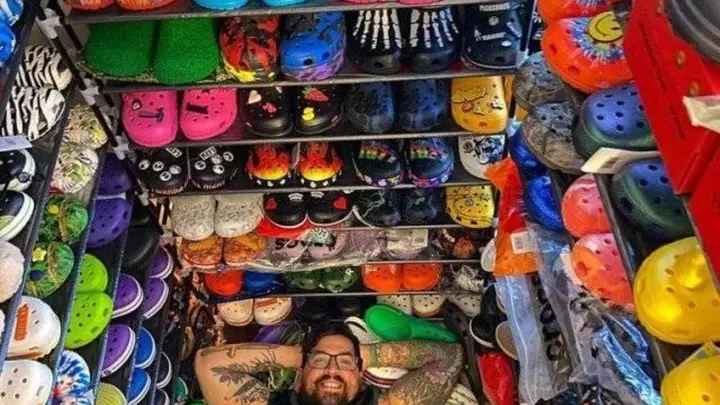 يسعى الأمريكي دوجي ليش ساندتيجر، 32 عاماً، من ولاية كونيتيكت ويعرف باسم «ملك القباقيب» لتسجيل رقم قياسي في موسوعة غينيس لمجموعته التي تضم أكثر من 2000 زوج من الأحذية المطاطية.