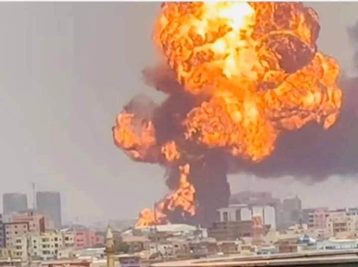 هز العاصمة الخرطوم، انفجارا عنيفا اليوم الاحد، وشوهدت السنة اللهب تتصاعد في المناطق المتأخمة لمطار الخرطوم.