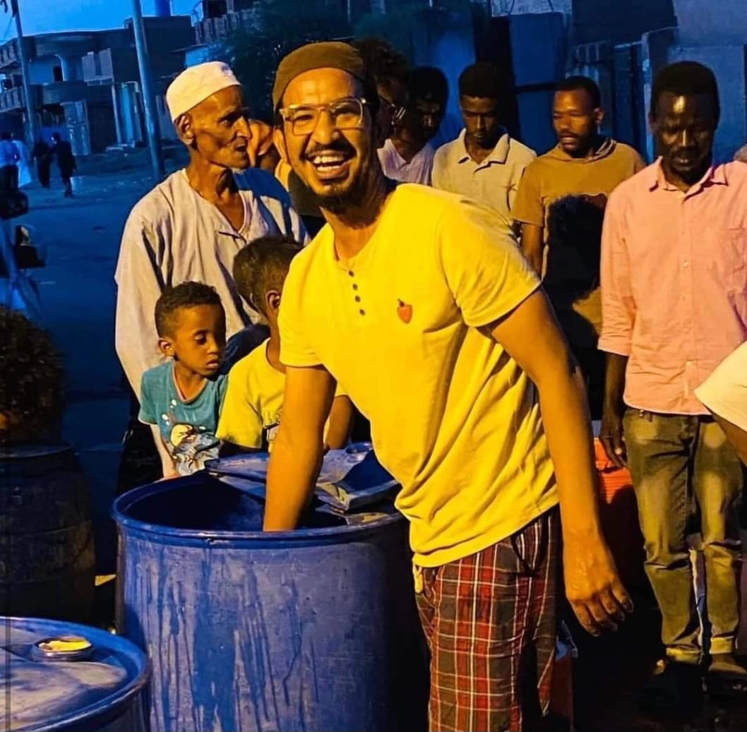 صور متداولة للفنان الشاب طه سليمان وهو ينشط في توفير الخدمات، ومساعدة الأهالي، بعد أن اختار البقاء مع اسرته وأبناء منطقته بشمبات