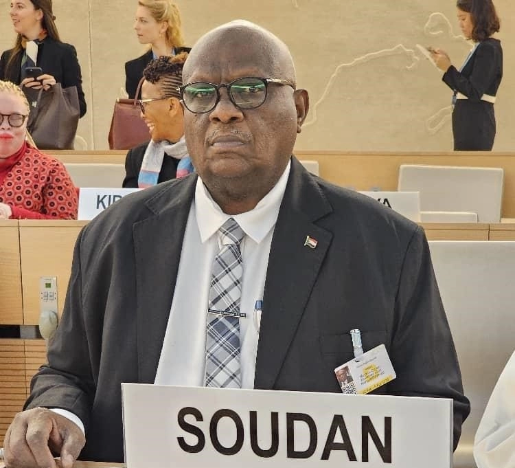 وأعلن خلال خاطب القاه بقصر الأمم المتحدة في جنيف، امام جلسة النقاش العام رفيعة المستوى لمجلس حقوق الإنسان، الالتزام الصارم للقوات المسلحة السودانية بالقانون الدولي الإنساني والقانون الدولي لحقوق الإنسان وقواعد الاشتباك الميداني وكافة المبادئ ذات الصلة بحماية المدنيين وهي تتصدى لهذا التمرد الغادر الذي له امتداداته الإقليمية والدولية.